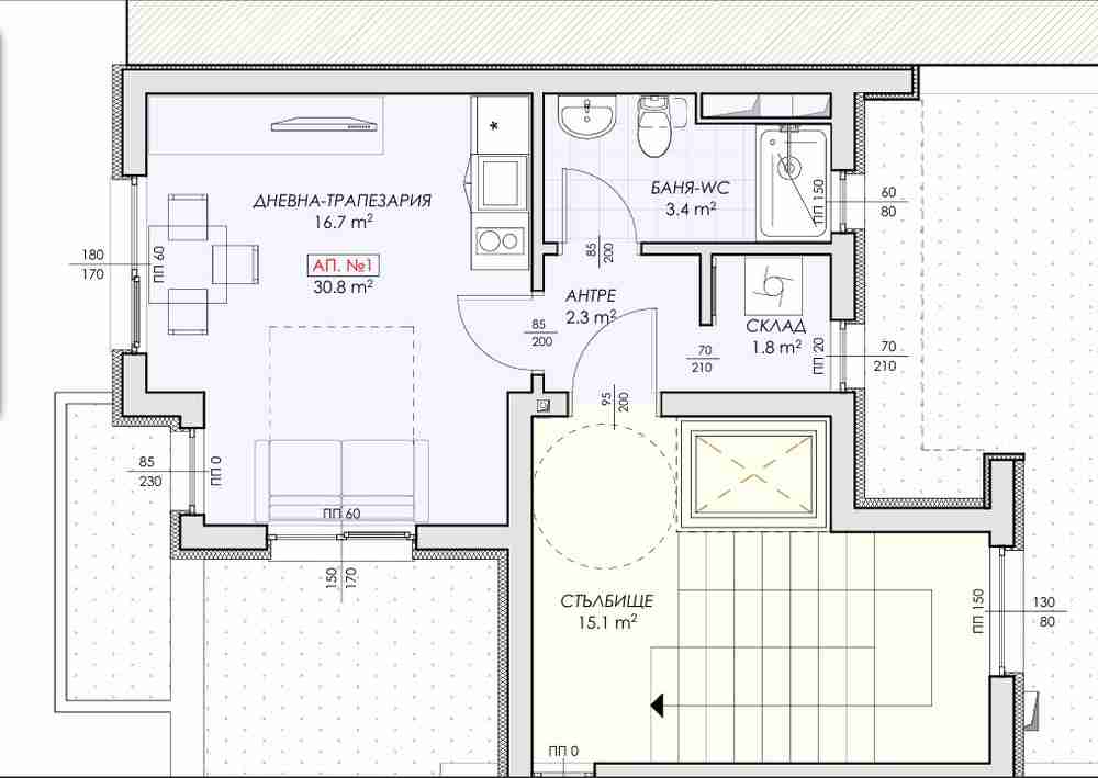 - Апартаменти с различна квадратура едностайни, студиа и двустайни.