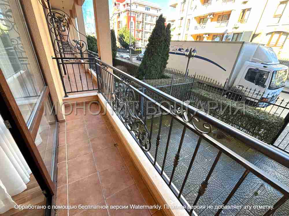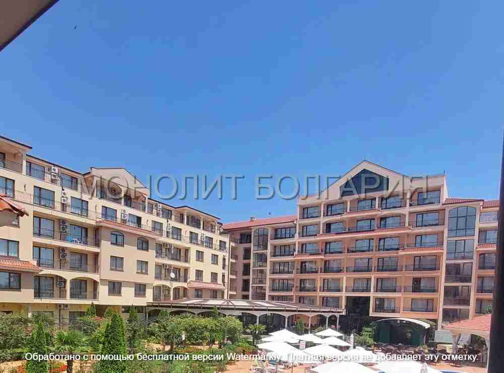 Описание: Предлагаме за продажба студио апартамент в Слънчев бряг, част от комплекс "Diamant Residence". Намира се на първи етаж (висок сутерен) и предлага 34,5 кв.м площ. Напълно обзаведен е, разполага с коридор с просторен гардероб, голяма баня с душ и самостоятелен двор под балкона. Това компактно и добре поддържано студио апартамент е подходящо за семейство от трима души и е отличен имот за отдаване под наем! Комплексът споделя терен с хотела. По време на празничния сезон живущите имат достъп до бюфета на ресторанта срещу символична такса. Собствениците имат достъп и до два открити басейна с детска зона и бар, забавления, спа център, охрана и видеонаблюдение. Cacao Beach е само на 350 метра. Такса поддръжка: 320 евро/годишно. В сила е Акт 16. | |