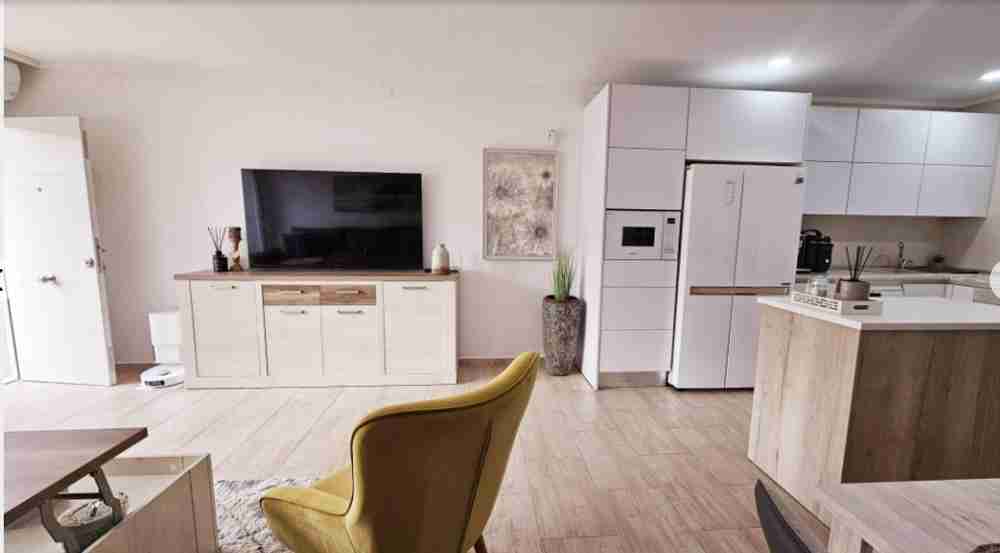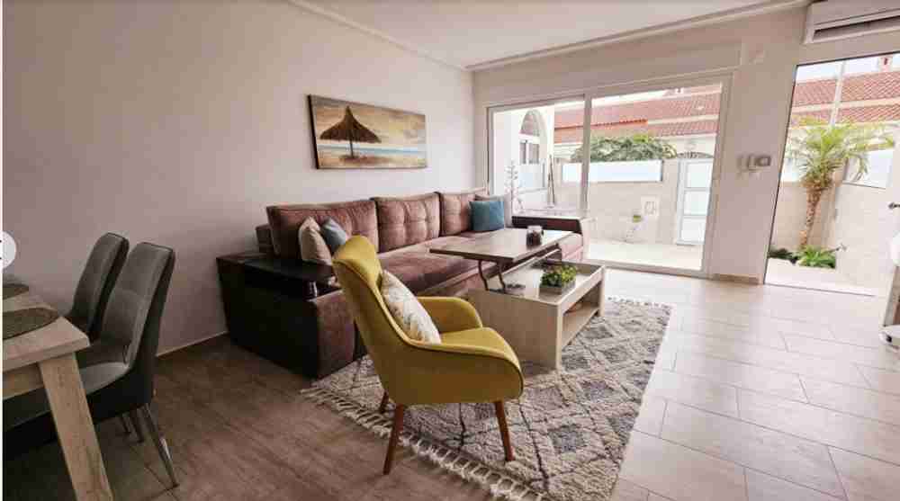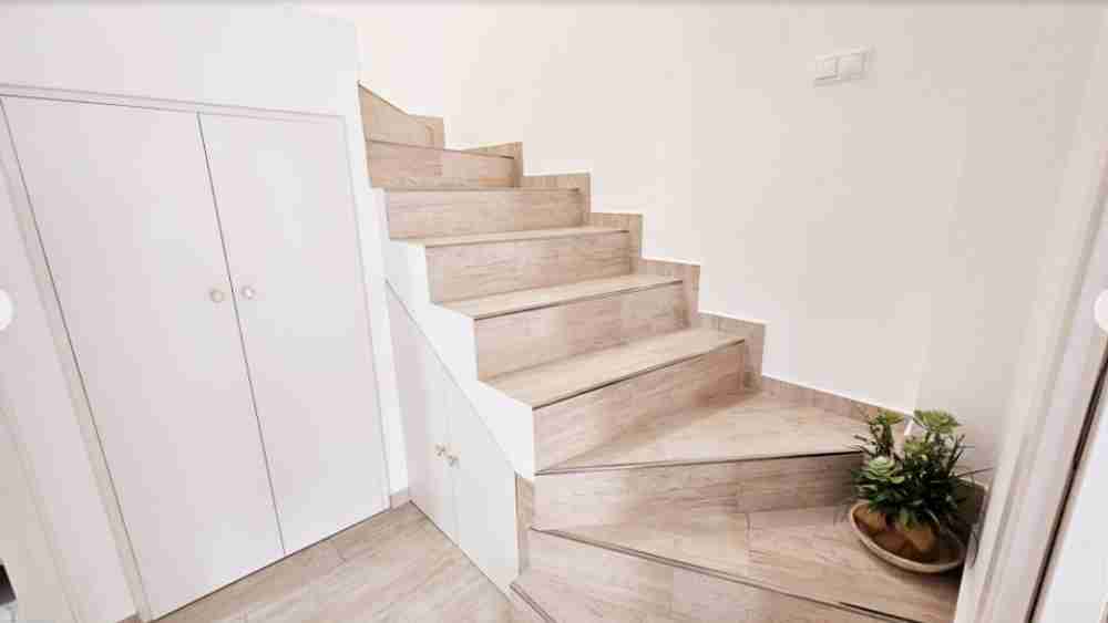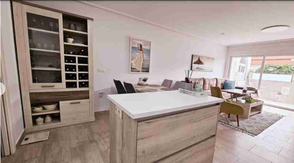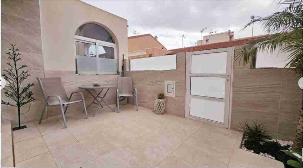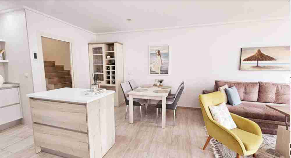 На партерния етаж има вътрешен двор/тераса, водеща към всекидневната с трапезария. Кухнята и банята също са разположени на този етаж. На горния етаж има две двойни спални с климатик и баня. Главната спалня има достъп до тераса с гледка. На втория етаж има перално помещение и тераса със солариум от 45 м² с красива гледка към солените равнини на Торевиеха.
