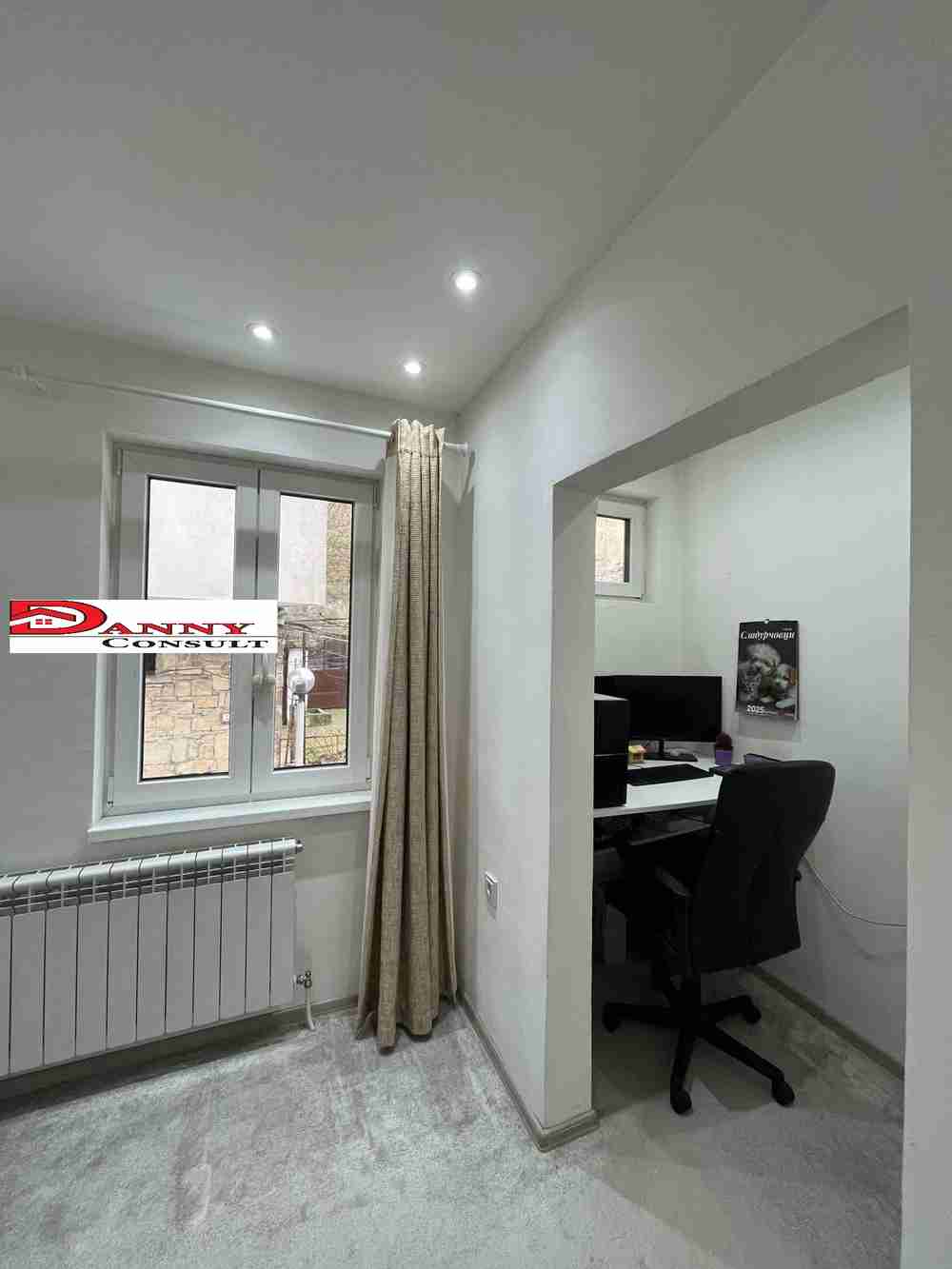 Описание: Агенция за недвижими имоти ”ДАНИ КОНСУЛТ” Ви предлага за продажба многостаен апартамент в кв. Асенов - гр. Велико Търново. Жилището е с РЗП от 150 кв.м, разположено на втори жилищен етаж от триетажна кооперация, изложението е изток/ запад/ север и има следното разпределение: коридор, всекидневна с кухненска част в един обем, три спални, едната от които разполага с офис, тераса и баня с тоалетна. Дограмата е PVC, подовите настилки са гранитогрес, теракот и мокет в спалните, отоплението е с локално парно на твърдо гориво, за охлаждане е монтиран климатик. Към етажът има прилежащи две избени помещения, на ниво партер, едното от които е обособено на стая с прозорци, таванско помещение, склад, под общите стълби и дворно място от 100 кв.м. Имотът се предлага с обзавеждането от вида на снимките.