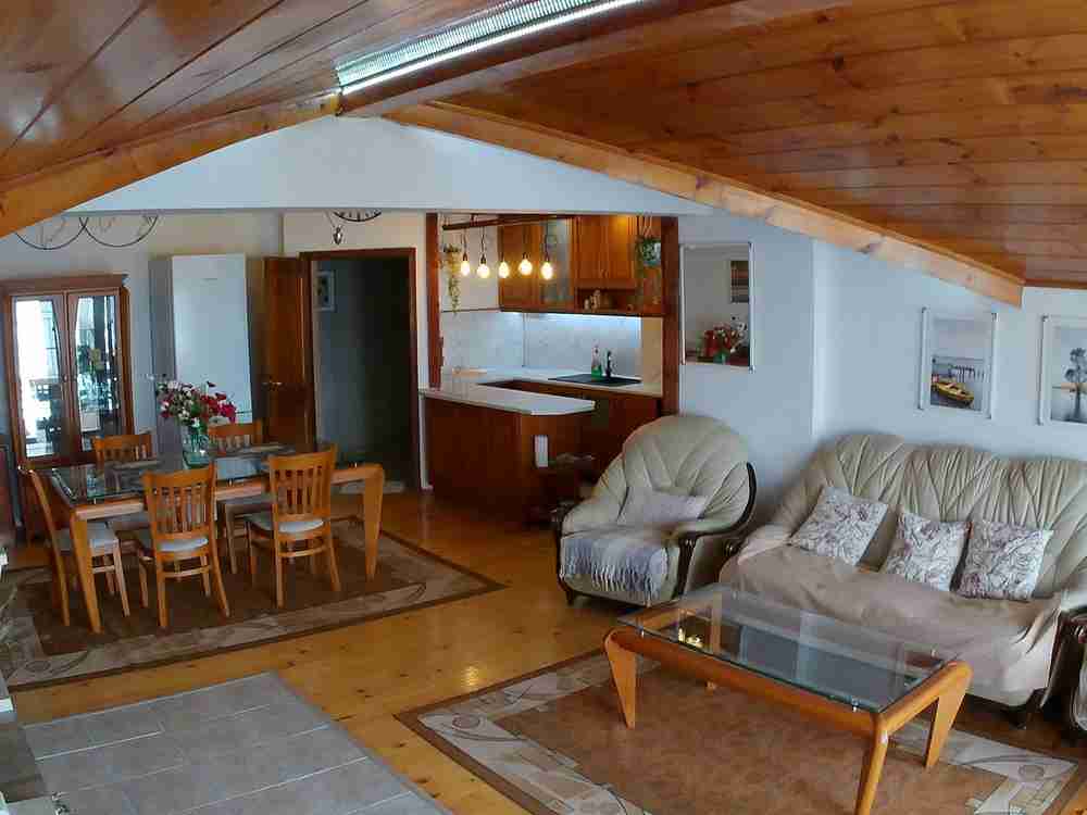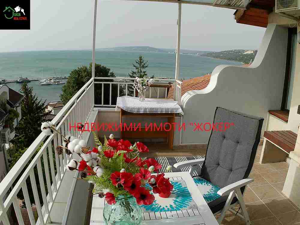Описание: Агенция за недвижими имоти ЖОКЕР, предлага за продажба просторен тристаен апартамент в идеалният център на гр. Балчик. Имотът се намира в близост до общината и на 150 метра до морето /3-4 минути пеша/. Апартамента е разположен на трети жилищен етаж в 3 етажна тухлена сграда, с отлично поддържани общи части и двор за паркиране. Дворното място в което е разположена сградата е 656 кв. м. Апартамента е в отлично състояние, като е основно реновиран преди три години. Чистата жилищна площ на апартамента е 159 кв. метра и се състои от: просторна дневна с кухненски бокс и тераса, голяма спалня със самостоятелна баня и тоалетна и голям дрешник /същият може да се обособи като отделна спалня/ и тераса, втора спалня, втора баня с тоалетна, обособен кът за работа /домашен офис/. От двете тераси се разкриват разкошни гледки към морето, като при ясно време се вижда нос Калиакра. Към имота има и прилежащи: избено помещение с площ от 8,40 кв. метра, таванско помещение – 4,80 кв. метра, 22,93 % от общите части на сградата и 14,87% идеални части от дворното място. Апартамента се продава напълно обзаведен и готов за ползване, като обзавеждането е ново /по поръча/ и е почти неизползвано. Разполага с два климатика, а в дневната има и действаща камина. На едната тераса има зидано барбекю. Имота е подходящ както за семейно жилище, така и за реализиране на инвестиционни намерения – отдаване под наем и др. Разположен е на топ локация, с наличие на всички необходими удобства – спирка на градския транспорт, заведения, магазини, място за разходка и др. За допълнителна информация и огледи: мениджър-брокер Станимир Стоянов - 0898749620. | |