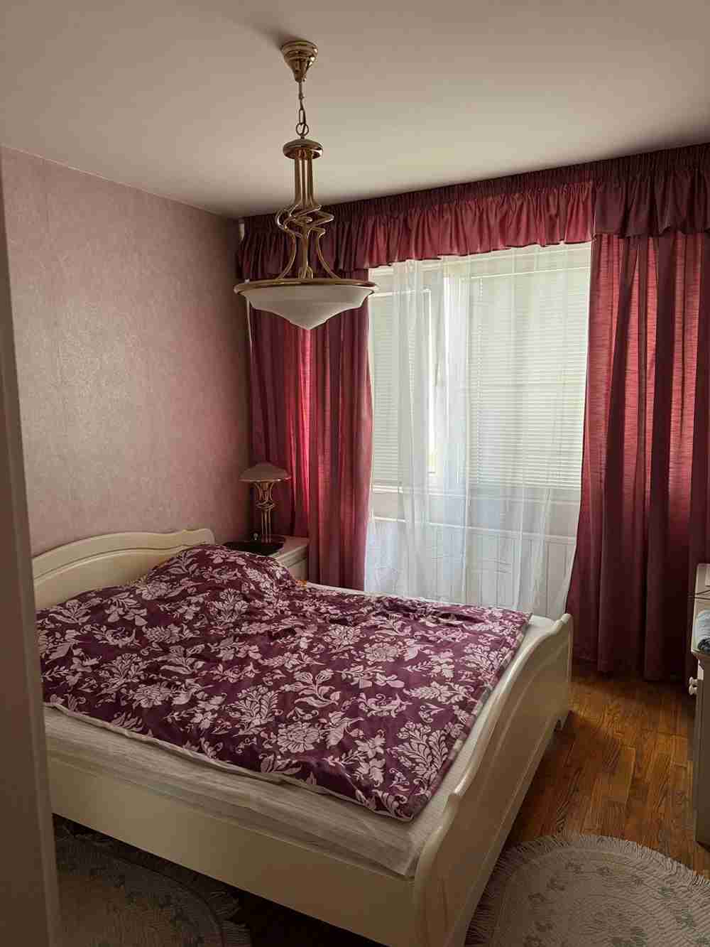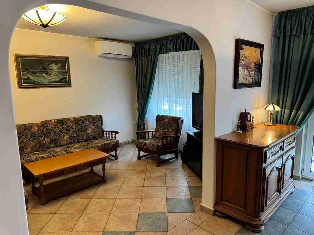 Вградена кухня масив с всички електроуреди, вносни масивни мебели, PVC дограма, външни щори, нов климатик в дневната.