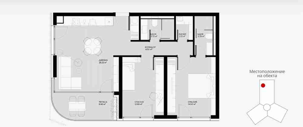 | Вид на имота | Тристаен апартамент |