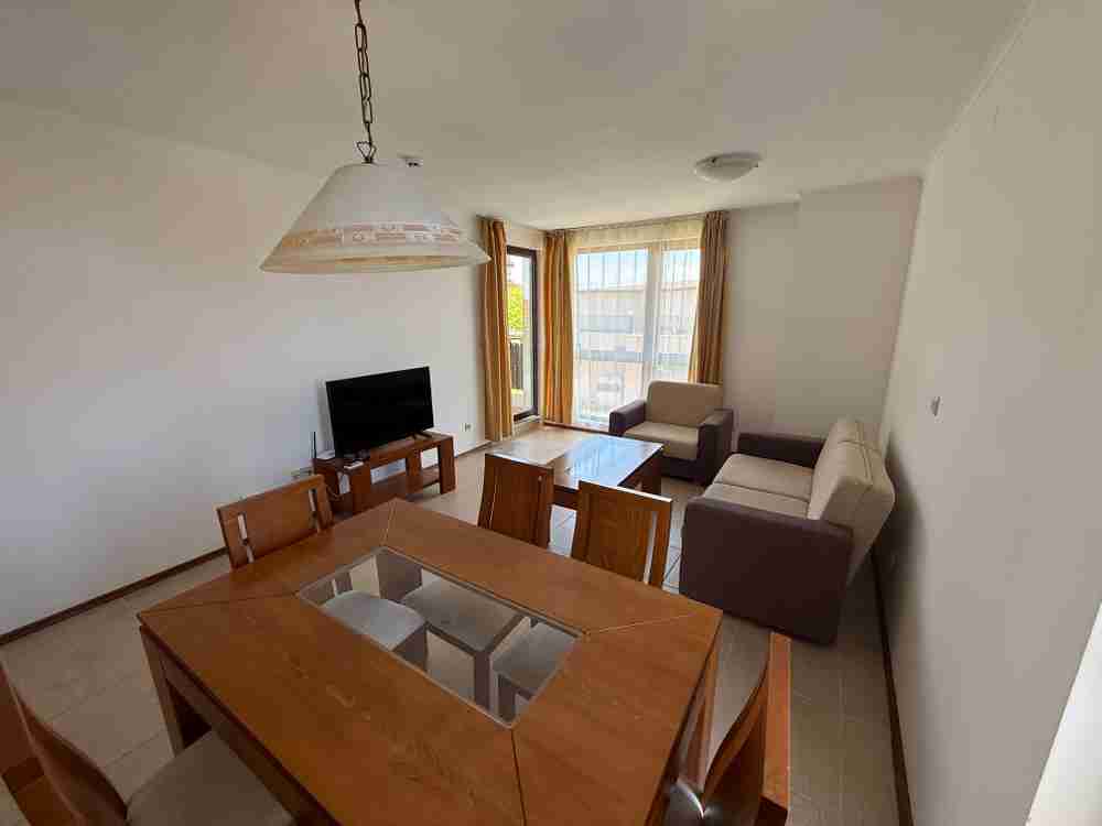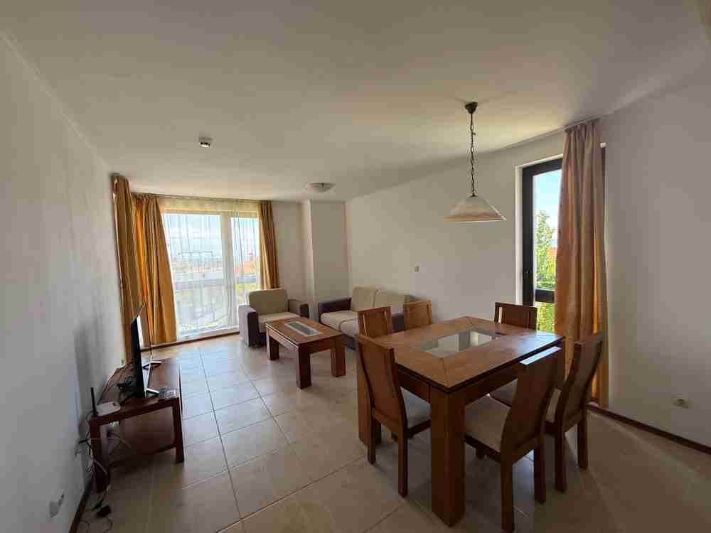 Описание: Обзаведен апартамент с 2 спални в комплекс от затворен тип Бей Вю Вилас в село Кошарица, само на 2 км от популярния морски курорт Слънчев бряг, на 3 км от плажа, на 1 км от автобусна спирка, в близост до магазин за хранителни стоки, на 100 метра от кафенета и ресторанти, на 35 км от Бургас.